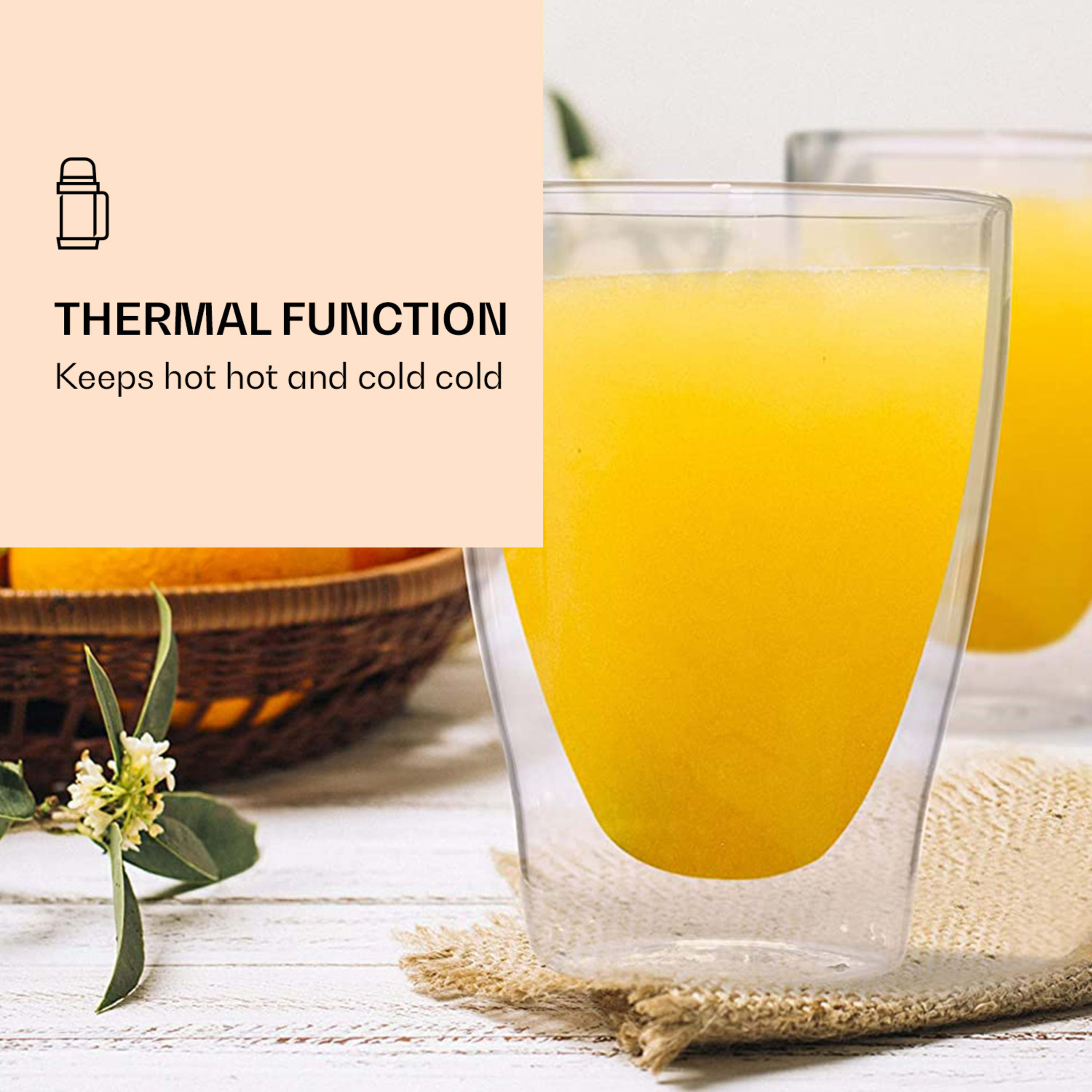 Luxusný pohár DUOS od Feelino by Klarstein je vyrobený ručne a svojím elegantným dizajnom obohatí vaše obytné prostredie. Dvojitá sklenená vrstva udrží studené nápoje dlhšie studené a teplé nápoje dlhšie teplé. Tento atraktívny pohár na espresso, čaj, panáky, aperitívy alebo dezerty je vyrobená z borosilikátového skla a je mimoriadne odolný a žiaruvzdorný: Je odolný proti poškriabaniu, veľmi ľahký a samozrejme vhodný do umývačky riadu. Systém dvojitých stien poskytuje aj úžasný optický efekt, vďaka ktorému sa zdá, že sa kvapaliny vznášajú.