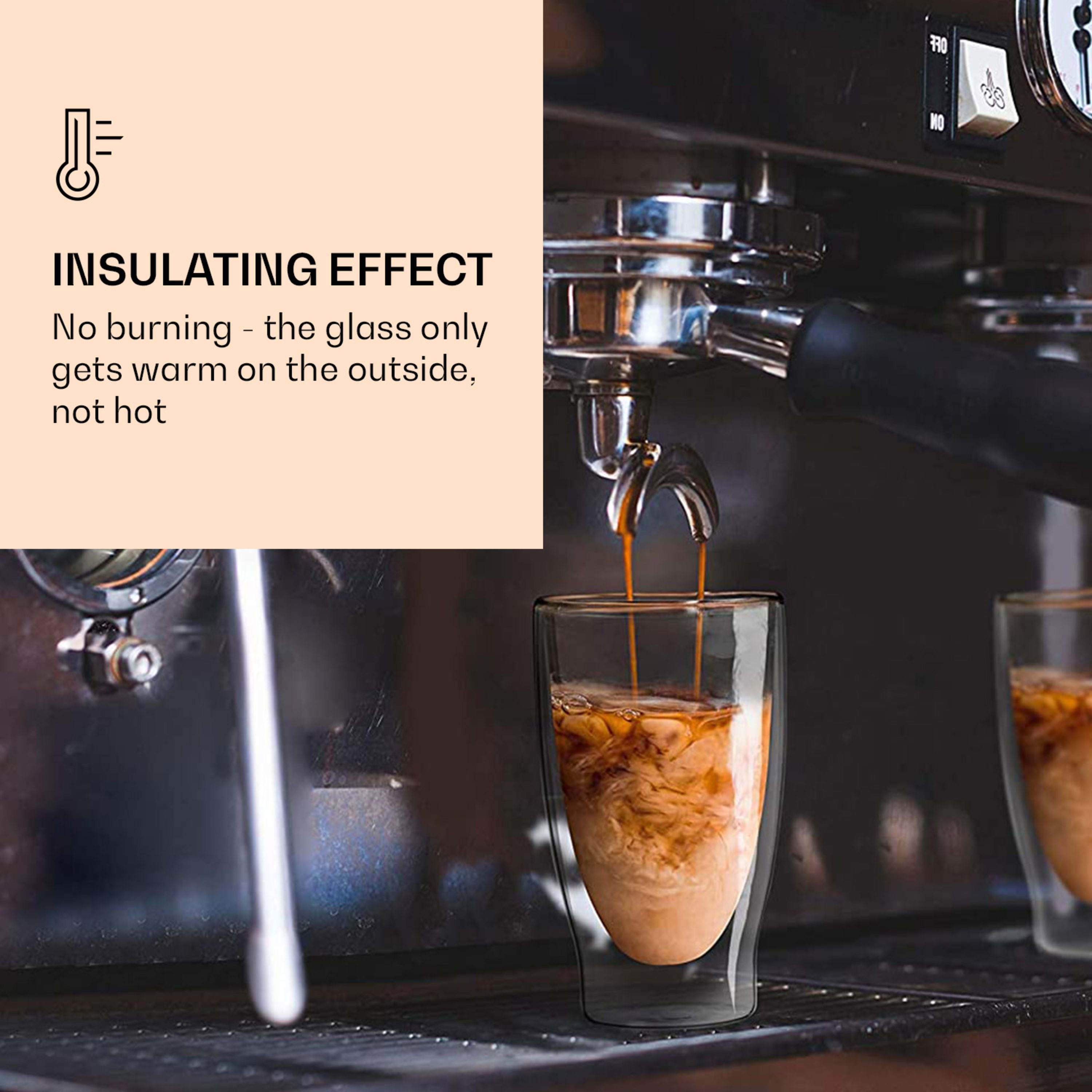 Luxusný pohár DUOS od Feelino by Klarstein je vyrobený ručne a svojím elegantným dizajnom obohatí vaše obytné prostredie. Dvojitá sklenená vrstva udrží studené nápoje dlhšie studené a teplé nápoje dlhšie teplé. Tento atraktívny pohár na espresso, čaj, panáky, aperitívy alebo dezerty je vyrobená z borosilikátového skla a je mimoriadne odolný a žiaruvzdorný: Je odolný proti poškriabaniu, veľmi ľahký a samozrejme vhodný do umývačky riadu. Systém dvojitých stien poskytuje aj úžasný optický efekt, vďaka ktorému sa zdá, že sa kvapaliny vznášajú.