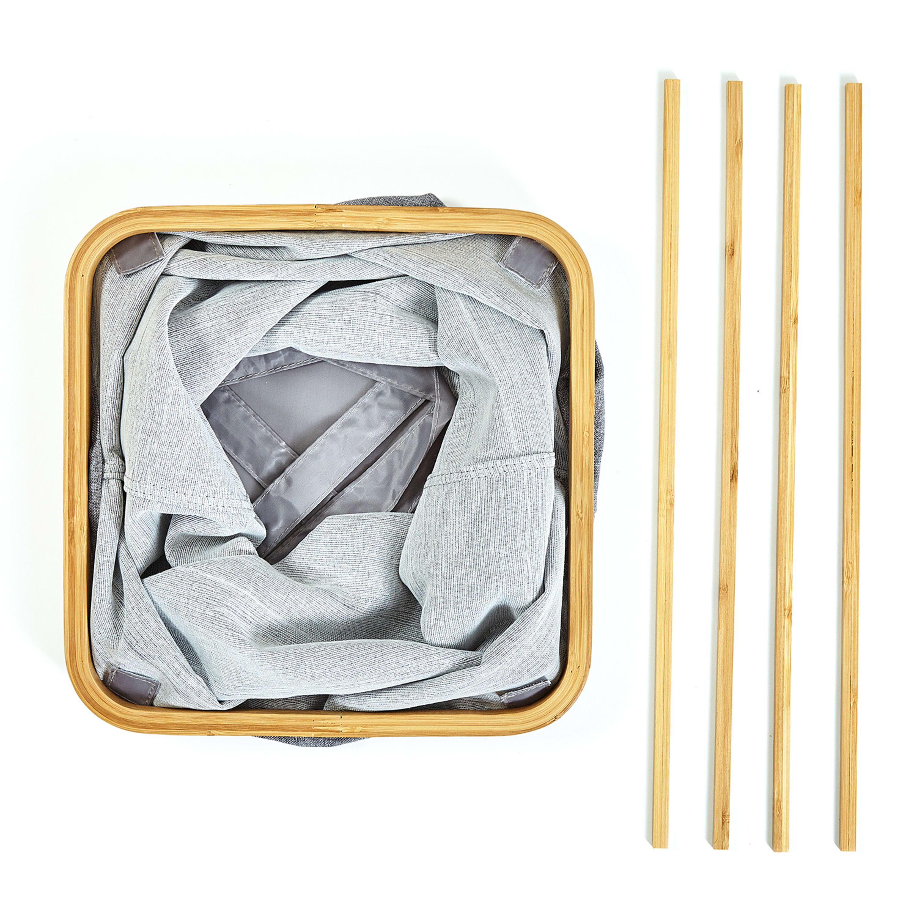 Prírodné materiály: pevný kôš na bielizeň vyrobený z bambusu a pevnej bavlny
