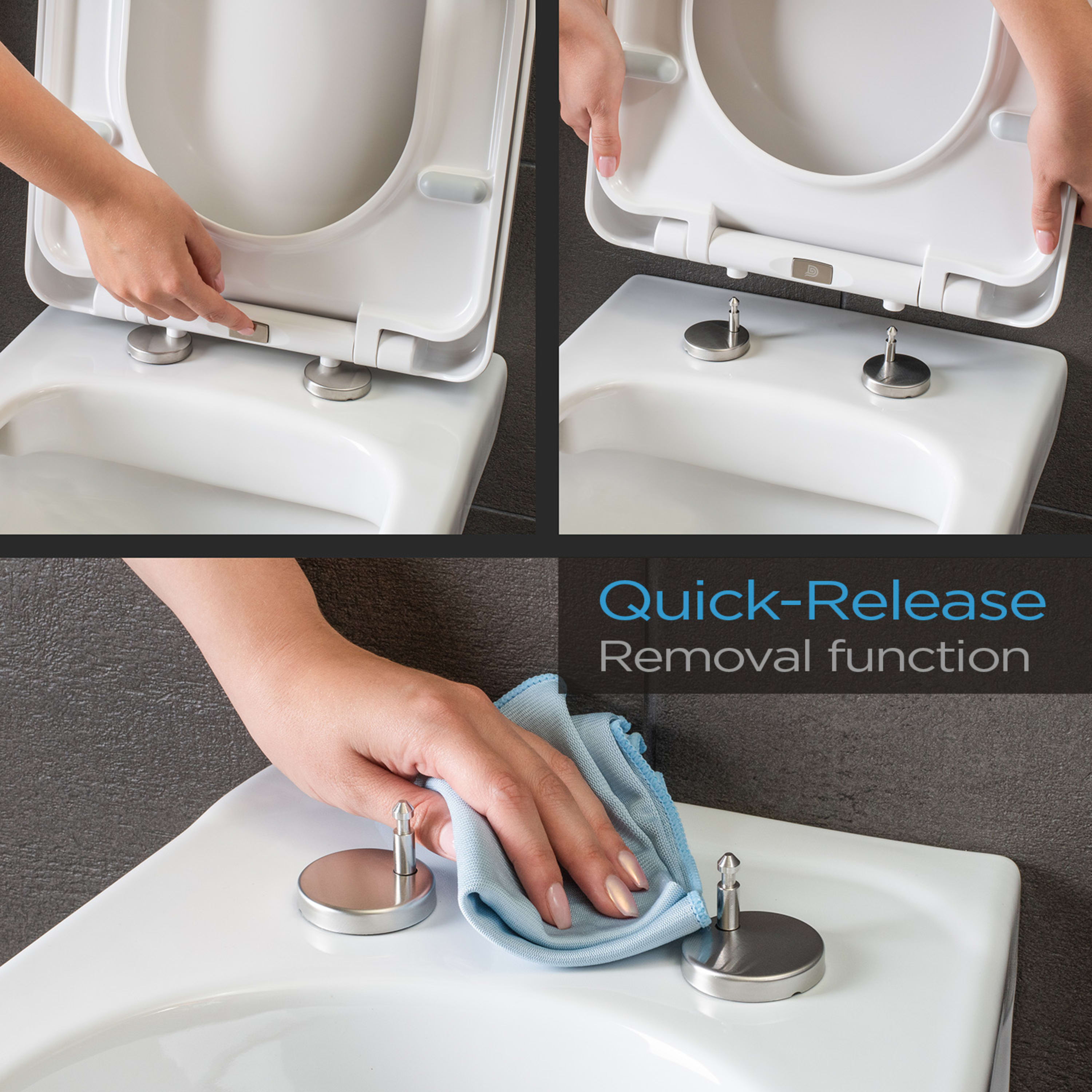 - funkcia rýchleho uvoľnenia: odnímateľná WC doska stlačením tlačidla