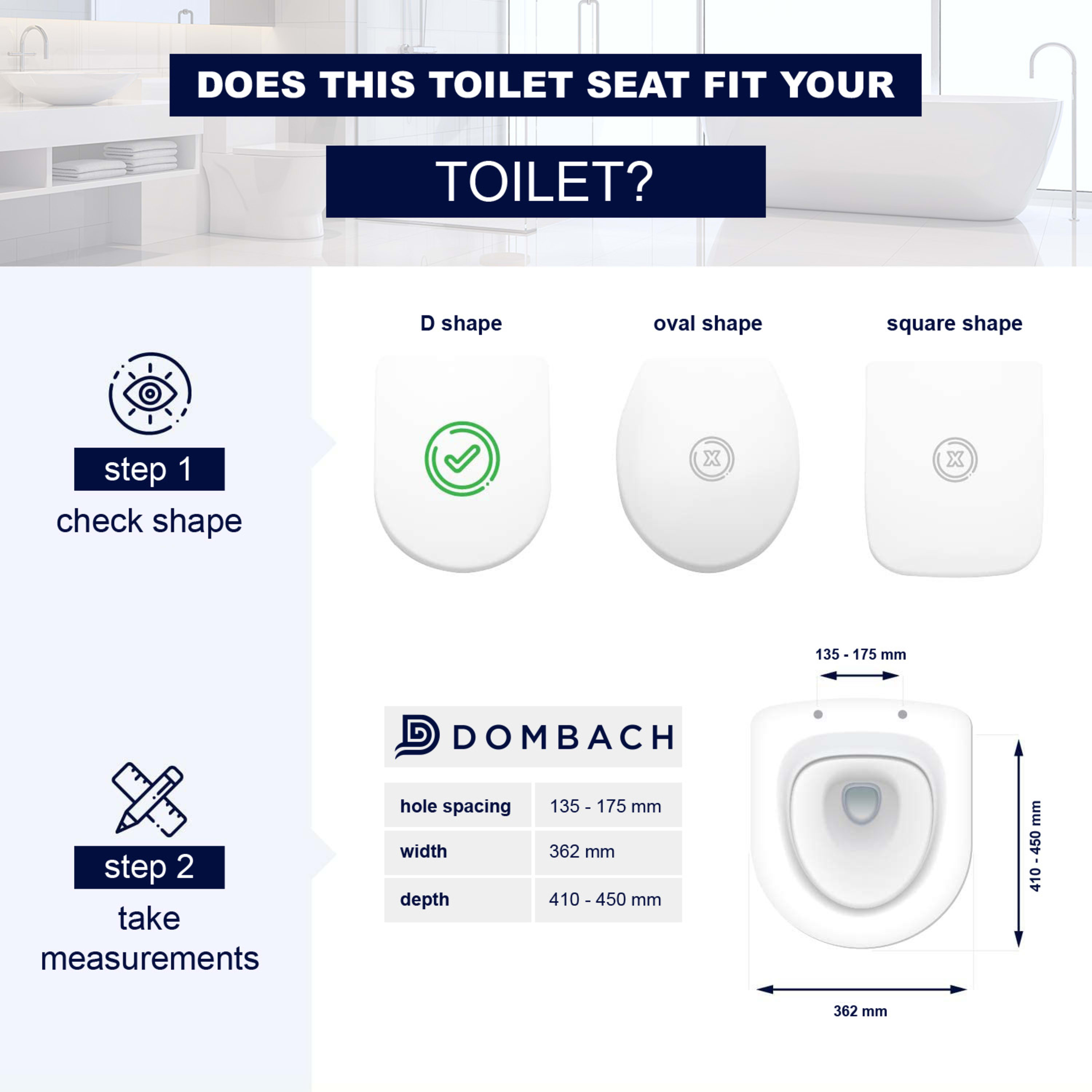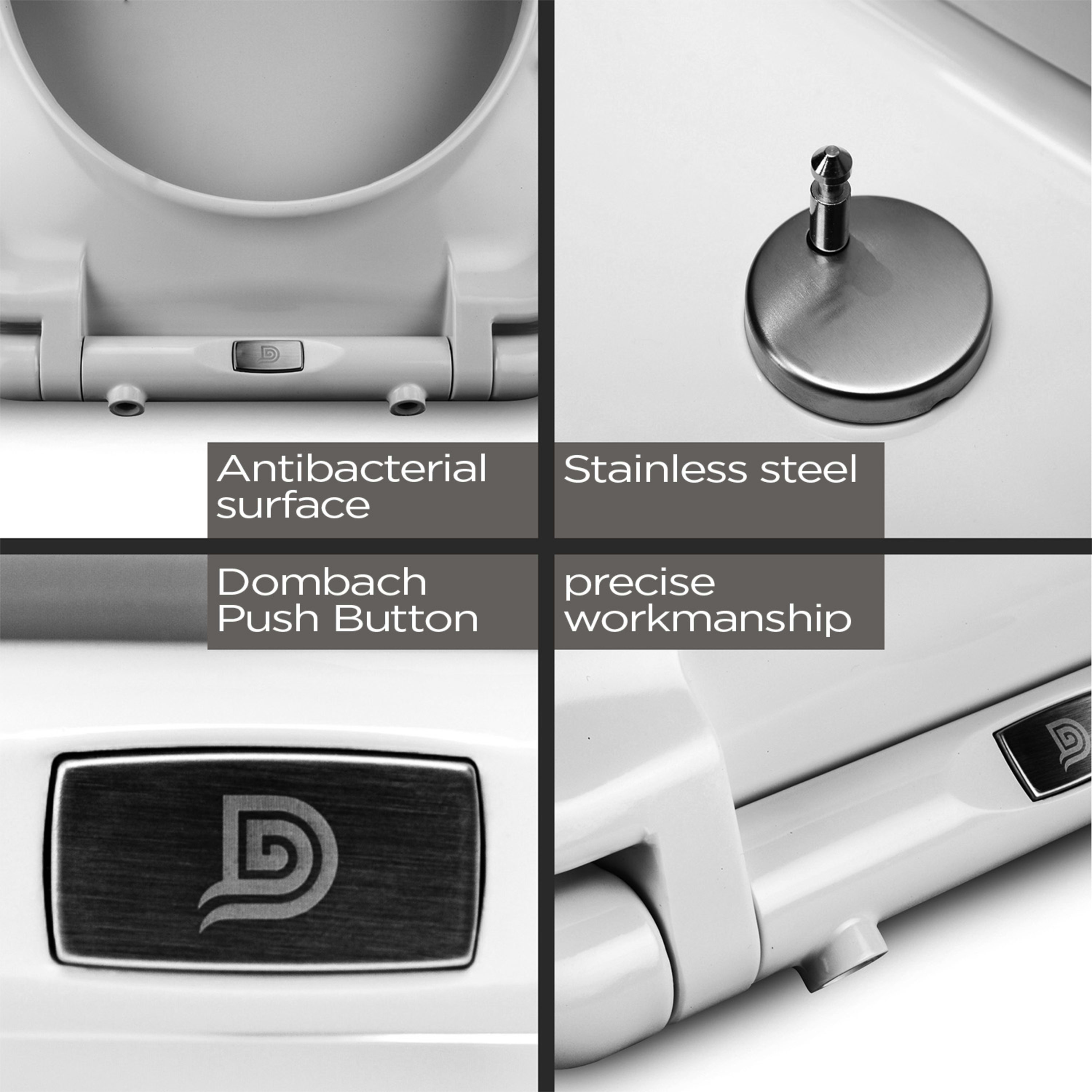 WC sedadlo Dombach Senzano je dokonale premyslené a navrhnuté tak, aby bolo všetko v kúpeľni jednoduché, rýchle a čisté. Vďaka technológii softclose sa veko toalety zatvára automaticky tým, že sa sedadlo samo a ticho sklopí nadol. Pre lepšiu hygienu v kúpeľni môžeš kedykoľvek WC dosku jedným stlačením tlačidla zložiť z toalety a vyčistiť. Potom jednoducho dosku nasaď späť: hotovo. Všetko je veľmi jednoduché a hotové za pár sekúnd. Baktérie už v tvojej kúpeľni nemajú šancu. WC sedadlo má okrem toho vďaka antibakteriálnemu duroplastovému materiálu povrch, ktorý odpudzuje nečistoty. Chráni tak teba aj tvoju rodinu ešte lepšie. Inštalácia dosky na toaletu Dombach Senzano je vykonaná za menej ako 3 minúty vďaka montážnemu návodu a jednoduchej konštrukcii. Povrch, ktorý je odolný voči poškriabaniu, sa postará o dlhú životnosť a veľa radosti v kúpeľni.