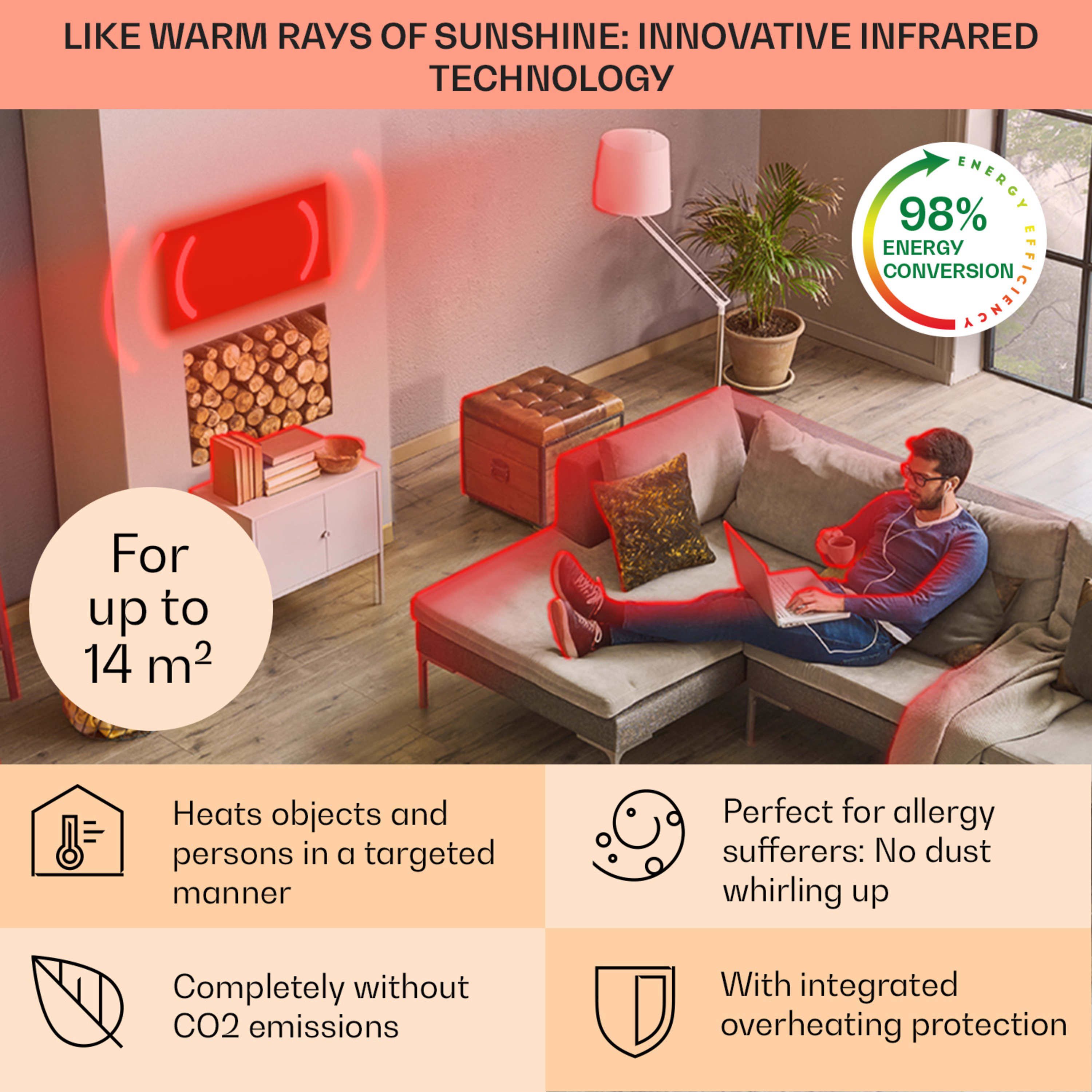 - Prevádzkový režim: sálavé teplo (infračervený sálavý ohrievač) / konvekcia