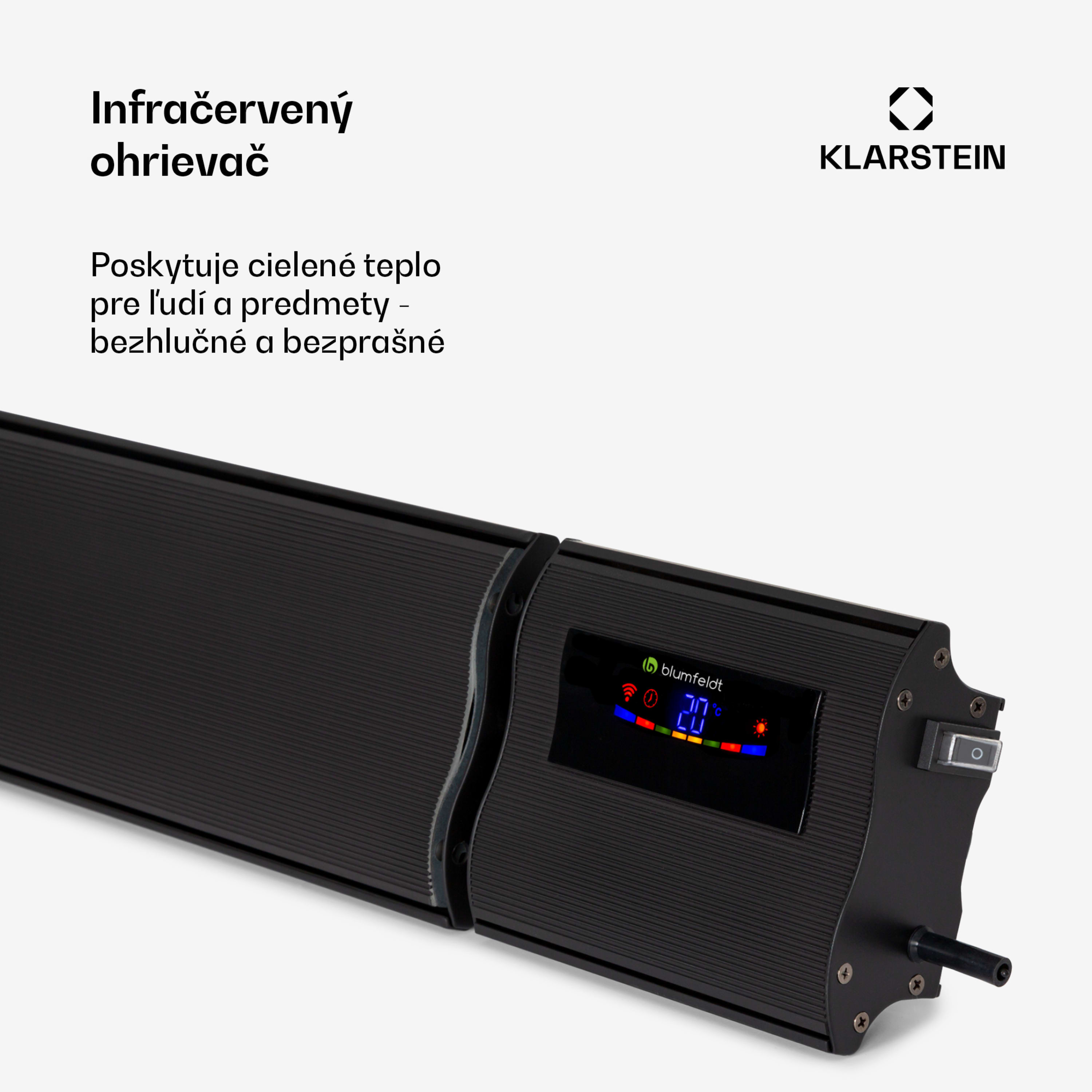 Teraz ešte inteligentnejší: nové infračervené ohrievače blumfeldt Cosmic Beam Smart 30 sa dajú pripojiť k miestnej sieti WiFi a potom sa dajú ovládať odkiaľkoľvek pomocou smartfónu alebo tabletu cez aplikáciu blumfeldt App Experience. Pomocou praktického diaľkového ovládača alebo integrovaného ovládacieho panela s displejom na zariadení sa dá elektrický ohrievač pohodlne ovládať aj priamo. Ohrievač blumfeldt Cosmic Beam 30 umožní bezstarostné večere aj plánovanie záhradných párty i osláv bez starostí s teplotami. Stabilná hliníková konštrukcia s práškovým lakovaním je odolná voči poveternostným vplyvom a vďaka ochrannej triede IP44 je ideálne pripravená na použitie v exteriéri. Dodávaný montážny materiál umožňuje nekomplikovanú montáž na stenu alebo strop.