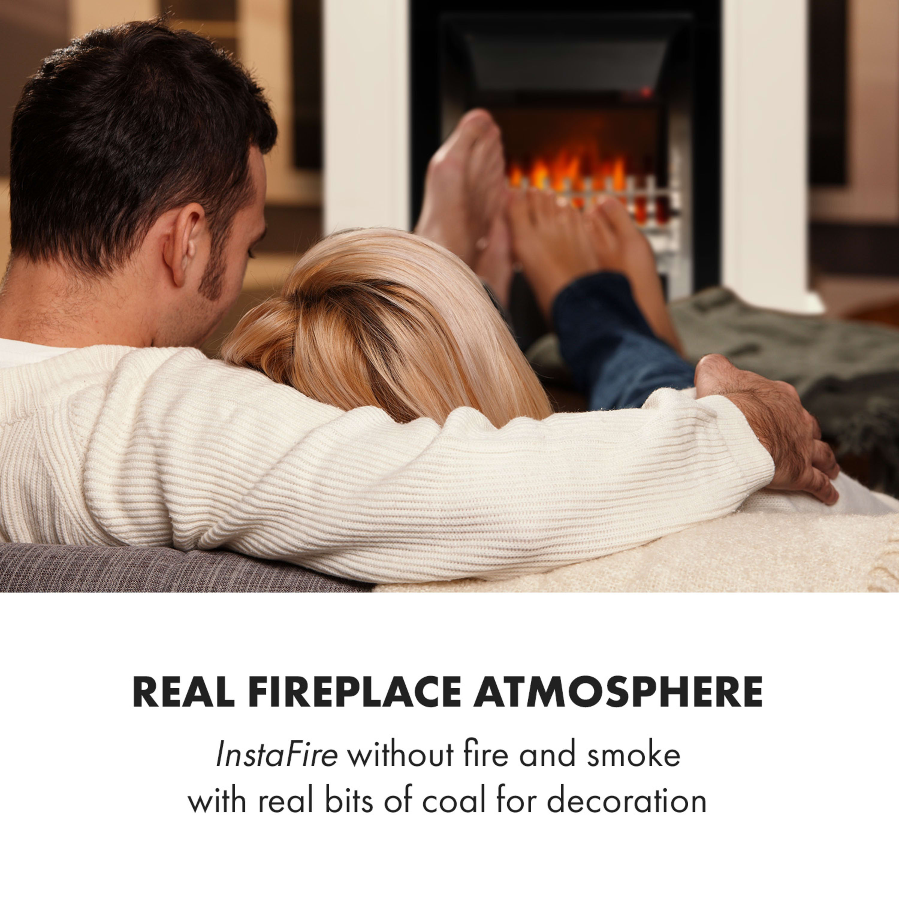 Jedinečný dizajn krbu s konštrukciou z robustnej MDF dosky vytvorí útulnú atmosféru v klasickom vidieckom štýle. Vďaka veľkorysému priehľadnému okienku budete mať dokonalý výhľad na dekoratívne kúsky uhlia. Tento pohľad InstaFire okamžite vytvára dojem praskajúceho ohňa bez skutočného ohňa alebo otravných sadzí a očarí naozaj každého. Ak je to potrebné, jas LED efektu plameňa sa môže stlmiť, aby sa pri každej príležitosti vytvorila špeciálna atmosféra. Pre jednoduché čistenie je vysunutý vrch krbu pripevnený pomocou magnetov a dá sa kedykoľvek ľahko odstrániť.