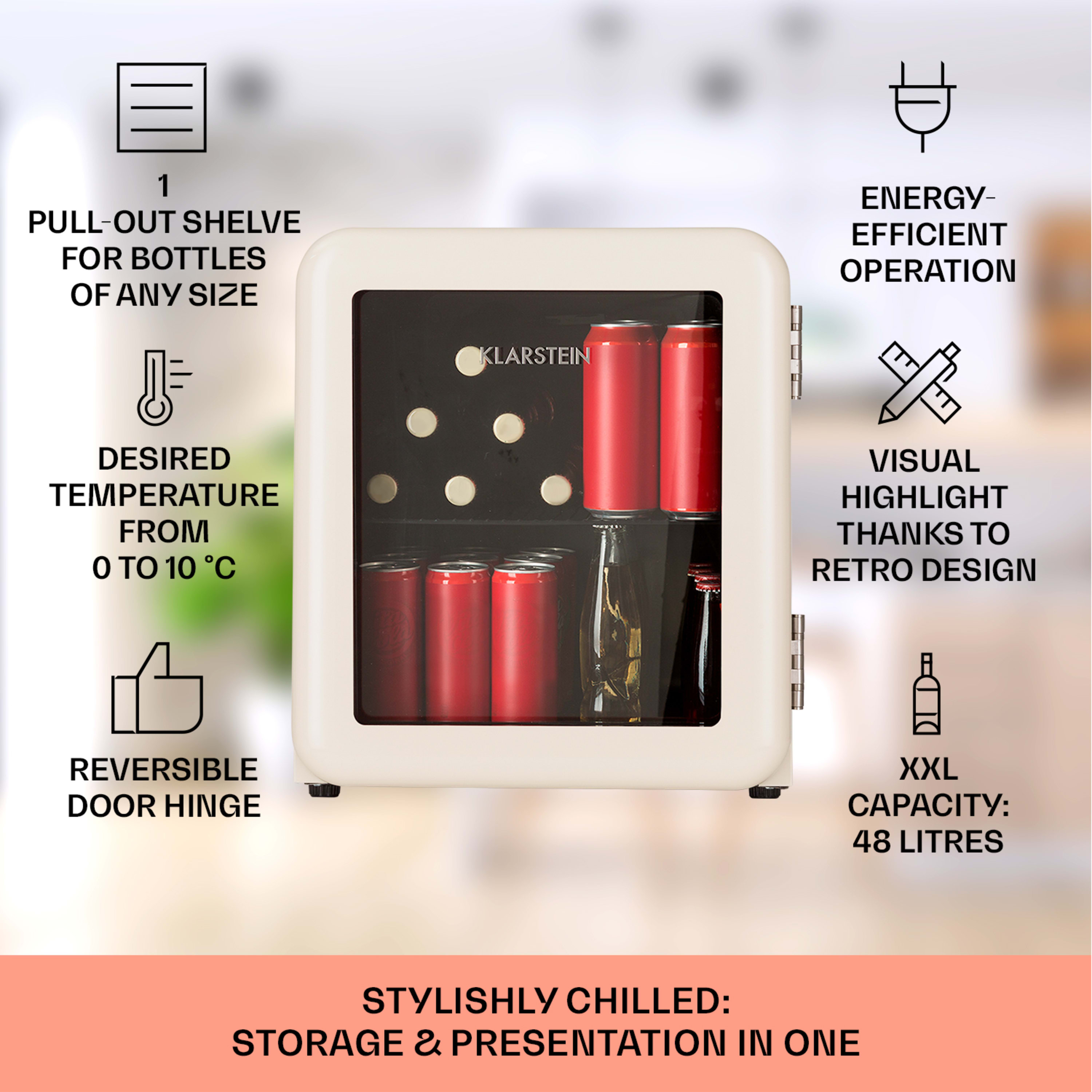 Kompaktná, praktická a pekná: retro chladnička PopLife 48 od Klarstein je skvelá ako chladnička na nápoje.