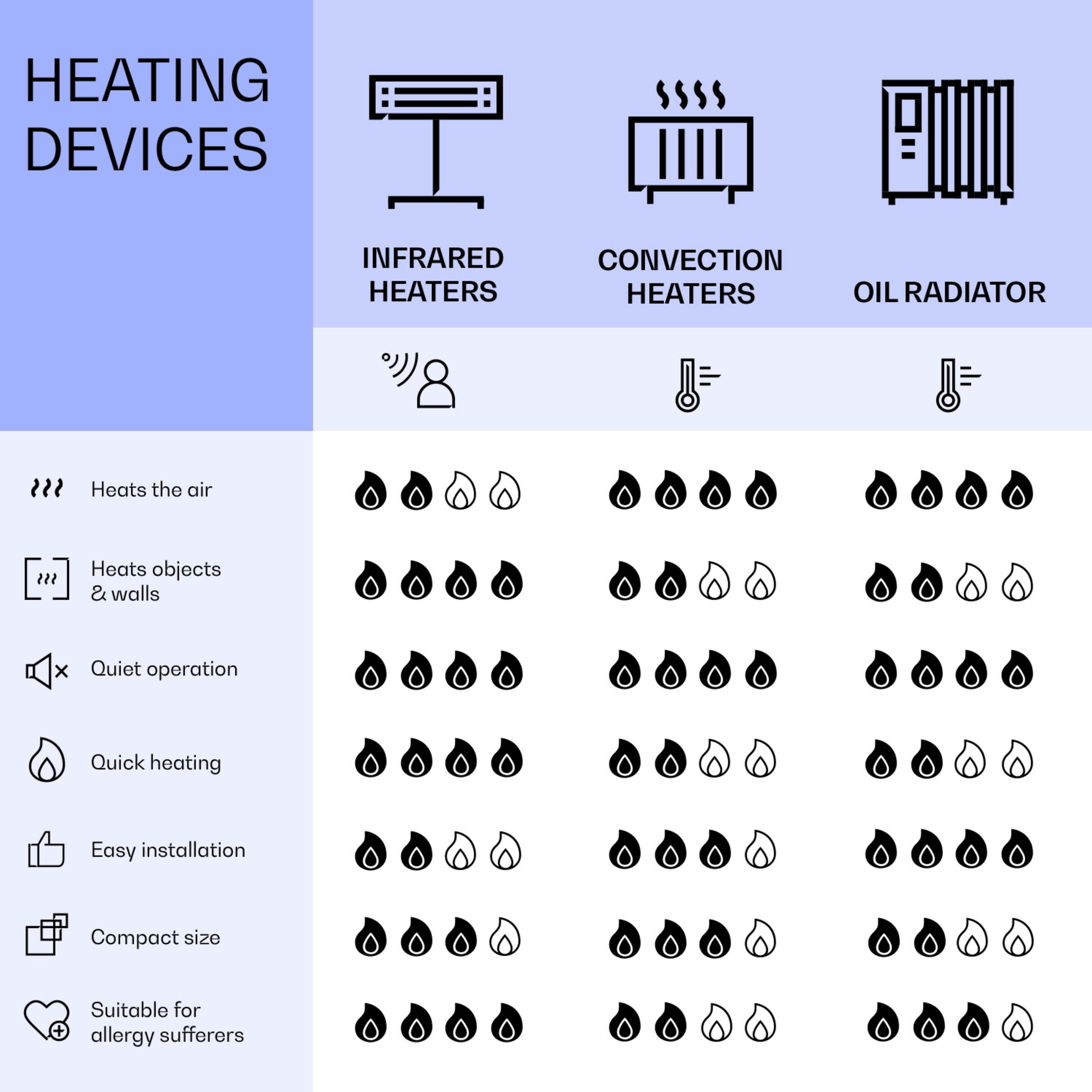 - IR ComfortHeat: zohrieva ožarované osoby a predmety, bez priameho vyhrievania vzduchu