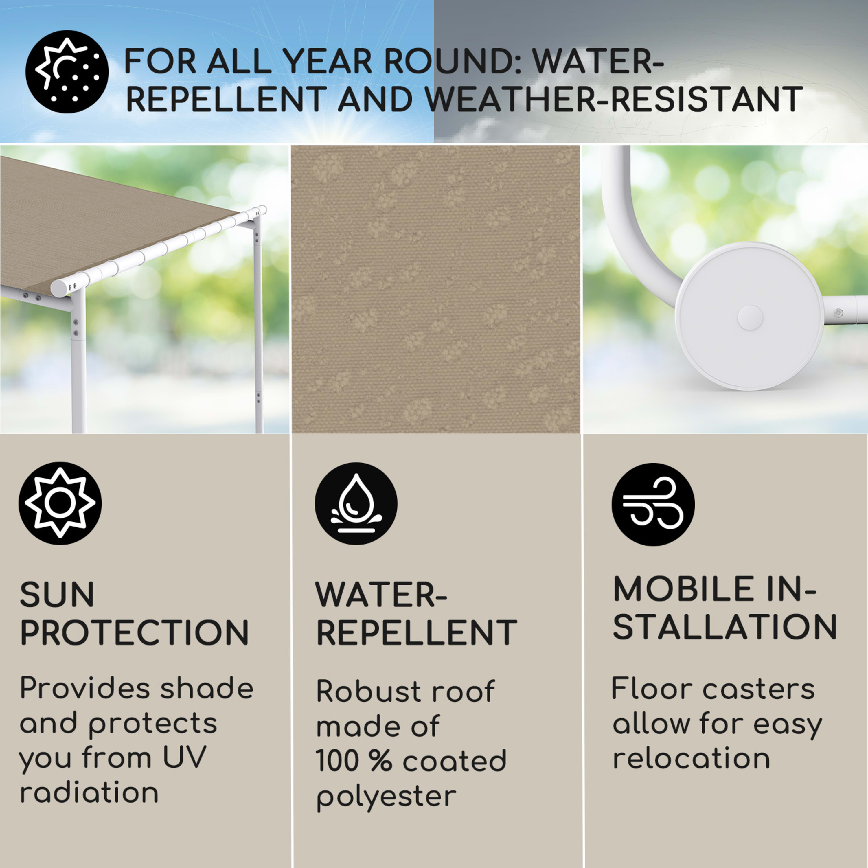 S pergolou Nantes od blumfeldt spravíte zo svojej terasy alebo záhradného posedenia príjemne tienenú oddychovú zónu. V kompletnej súprave nájdte všetko potrebné aby ste s minimálnym úsilím vytvorili tienenú plochu s rozlohou 3 x 3 m. Rám z práškovo lakovaných oceľových rúrok je robustný, veľmi ľahký a odolný voči poveternostným vplyvom. Perfektné pre dlhodobé potešenie z oddychu vo vonkajšom prostredí – úplne bez škvŕn od hrdze na podlahe terasy. A vďaka integrovaným podlahovým kolieskam je aj plne mobilná - takže svoje miesto v tieni budete mať vždy presne tam, kde sa vám to páči. Praktická strieška z pevného polyesteru s gramážou 200 g/m³ je odolná voči vode a UV žiareniu. Strecha je mierne sklonená, aby umožnila ľahký odtok dažďovej vody. Pre jednoduchšie čistenie alebo pri silnom vetre môžete textilný poťah v niekoľkých krokoch odstrániť a znovu pripevniť. Pre ešte väčšiu stabilitu možno rám ukotviť do zeme pomocou priložených kolíkov.