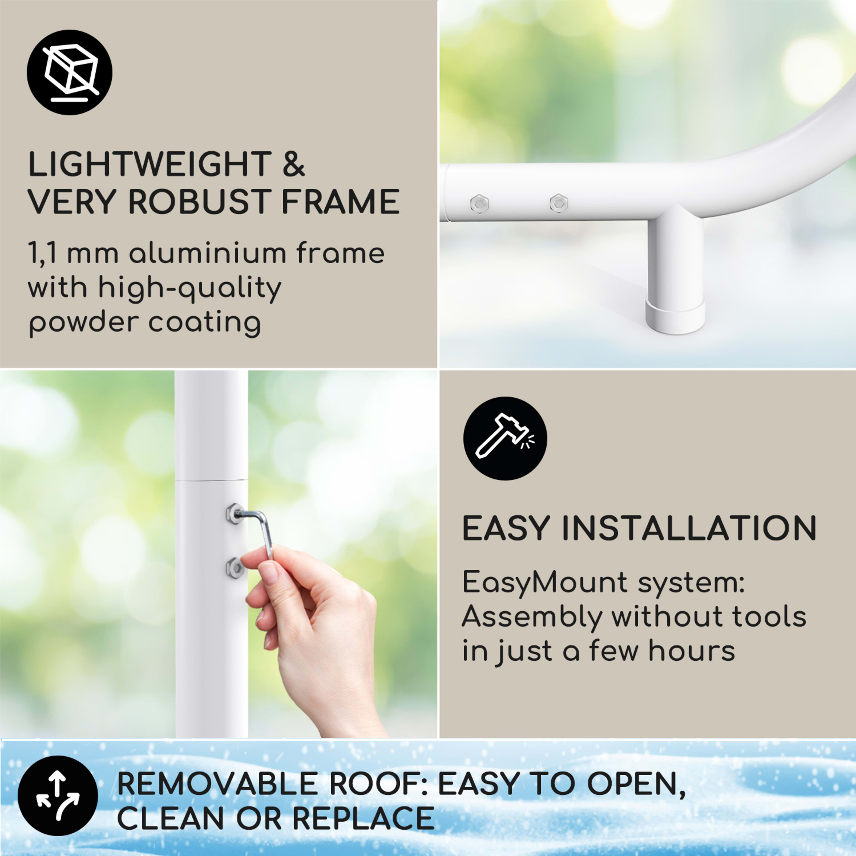 - Odolná voči UV žiareniu a vode: Robustná strecha z 200 g/m² polyesteru s ochranou UV50+
